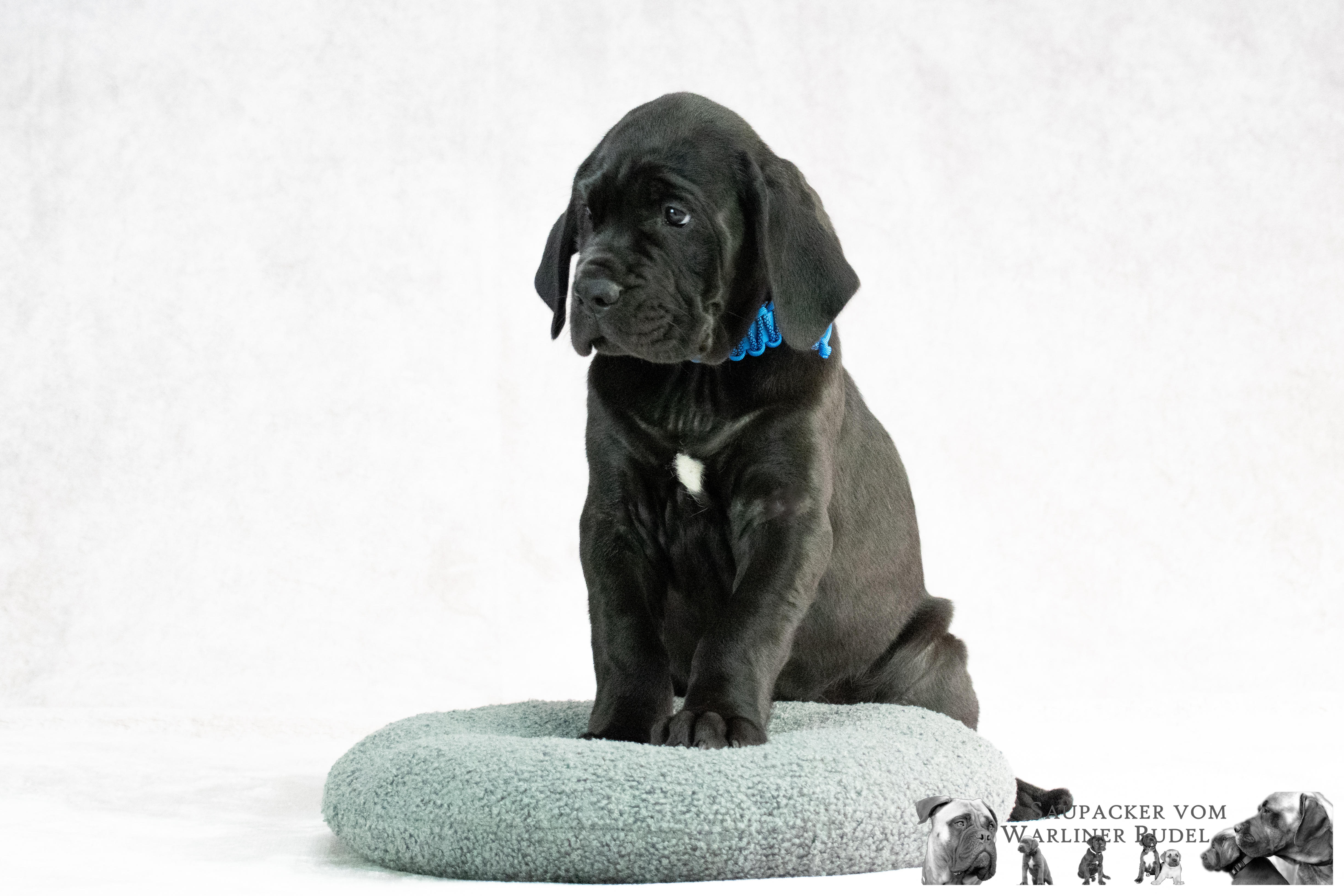 Dieser stattliche Rüde erblickte um 21: 15 Uhr das Licht der Welt und brachte stolze 635 Gramm auf die Waage. Auch in den kommenden Wochen bleibt er der schwerste Rüde im Wurf und brachte mit vier Wochen stolze 3.295 Gramm auf die Waage.