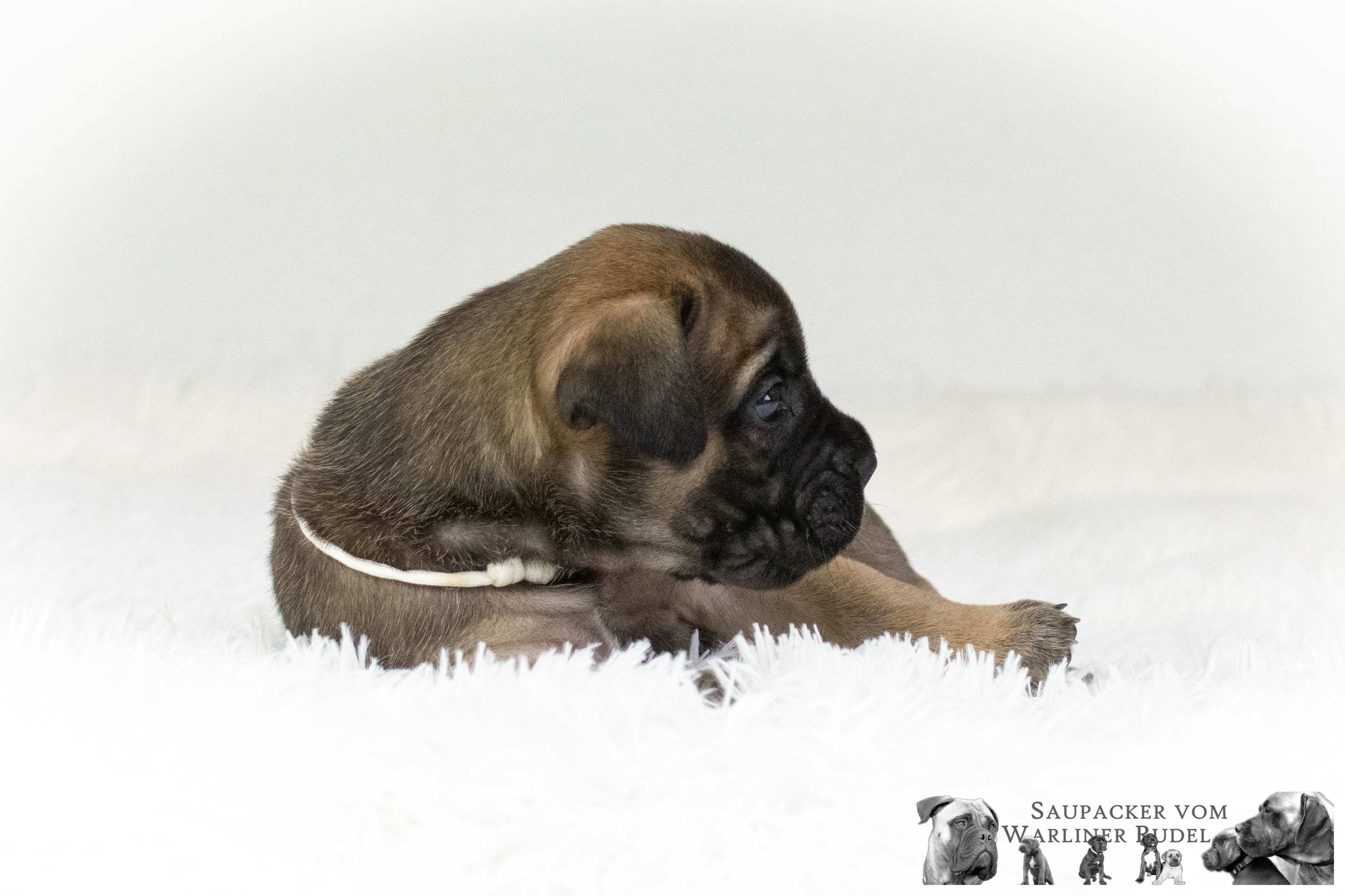 Mini wird wohl der kleinste Saupacker der Welt. Sie entwickelt sich genauso wie alle anderen Welpen auch, nur wachsen ist nicht ihre Stärke. Dafür ist sie super taff, mutig, clever und weiß sich durchzusetzen. Auch sie beobachtet gerne und sondiert die Lage und wird es ihr zu bunt, dann geht sie eben weg. Egal wie groß oder klein sie mal sein wird, sie hat einen fantastischen Charakter und eine sehr liebenswürdige Art, mit der sie jeden Menschen um ihre Pfoten wickelt.